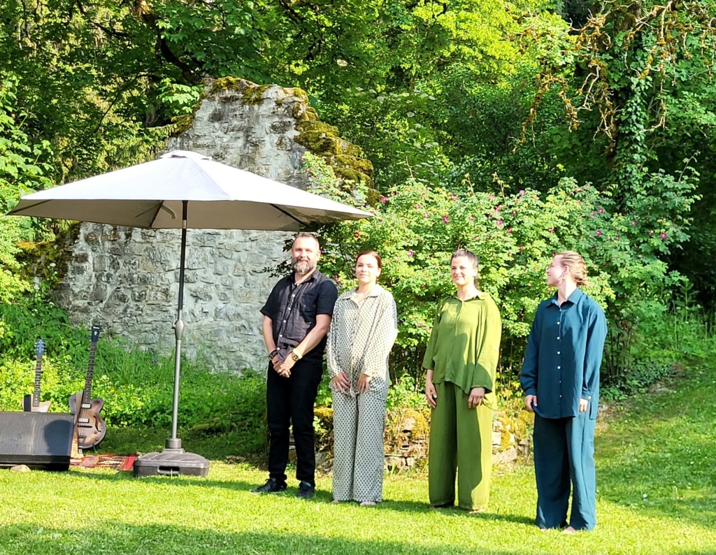 En préambule d’un projet planifié pour l’édition 2025 du Festival Altitudes, Nous et moi s’imprègne des lieux en résidence durant le festival et propose une improvisation sur site sur le thème de l’invisible. Le samedi, la performance de sortie de résidence est présentée en off du festival sur le parvis de l’église. Le dimanche matin, elle fait partie du projet Solis Ortus avec d’autres intervenants. La Cie Nous et Moi sera accompagnée par Arnaud Ivan Sponar alias Goodbye Ivan pour cette performance.