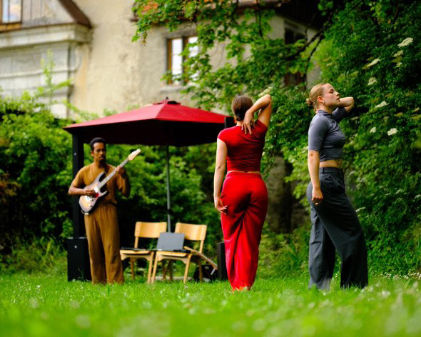 La pièce que la compagnie Nous et Moi écrit sur le thème du mythe de Perséphone à l’occasion du festival Altitudes est l’occasion pour les quatre artistes de réaliser leur envie d’intégrer la musique jouée en live comme intervenant à part entière dans une pièce in situ. Alors que les deux sphères étaient jusqu’ici circonscrites au studio en dépit d’un processus d’écriture en simultané et en collaboration, l’ajout de ce paramètre amène les chorégraphes à repenser leur fonctionnement en termes de dramaturgie et de scénographie, de réenvisager les frontières de la chorégraphie, de la partition, et de l’improvisation, ouvrant un champ de possibilités encore peu exploré par la compagnie.